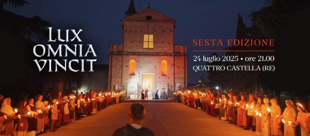 Il 24 luglio 2025 si è svolta a Quattro Castella la sesta edizione di Lux Omnia Vincit, una serata suggestiva interamente dedicata alla memoria di Matilde di Canossa, figura storica di grande rilievo per la cultura e la storia medievale italiana.