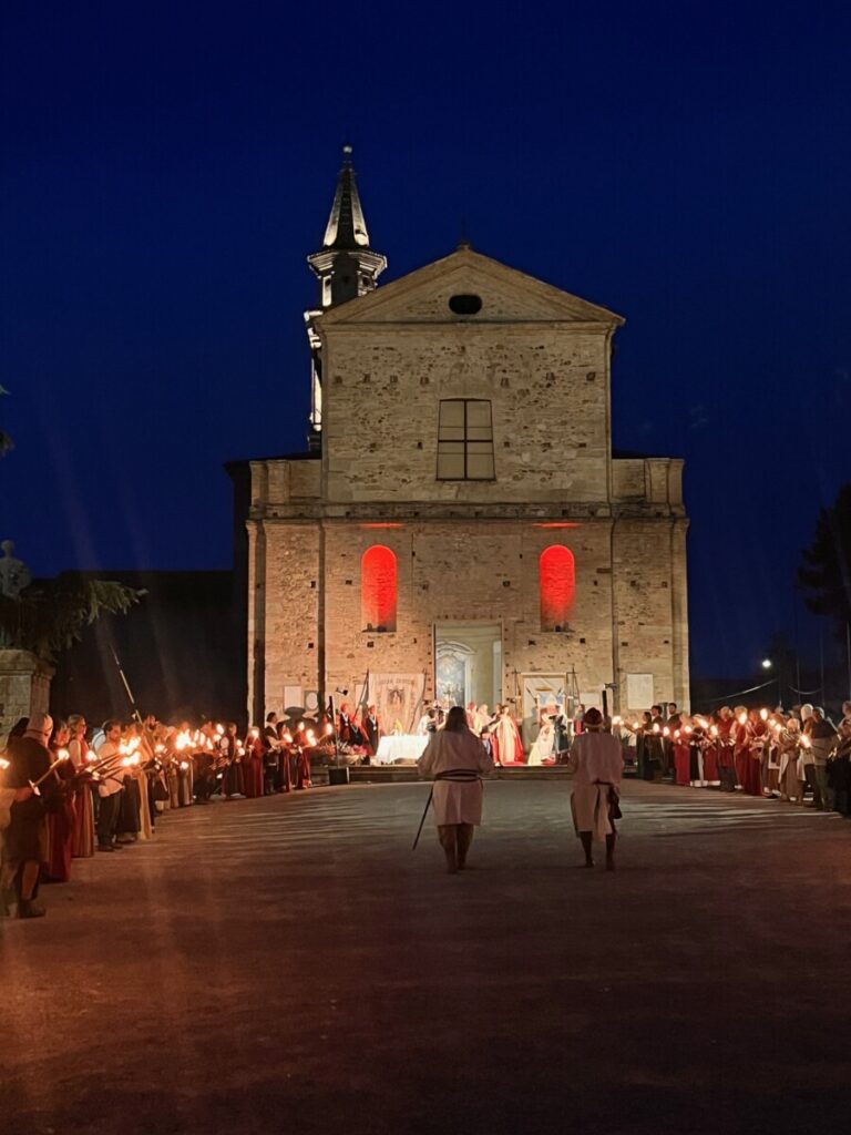 L’evento si è rivelato un momento intenso di spiritualità, storia e tradizione, in cui la luce – simbolo di speranza e di conoscenza – ha brillato nel cuore della comunità, attraverso una fiaccolata che ha illuminato la notte con il caratteristico “rosso Matilde”.