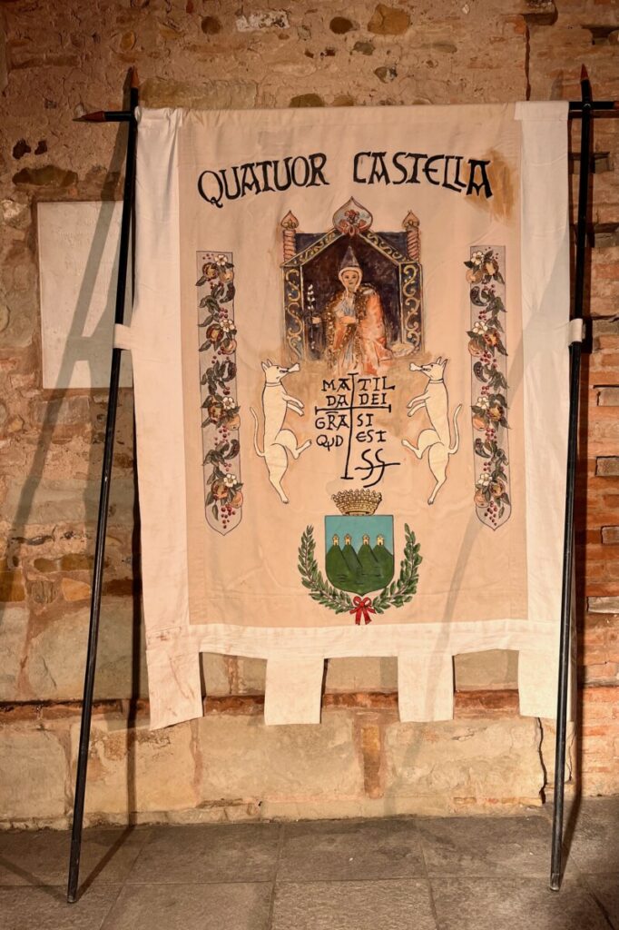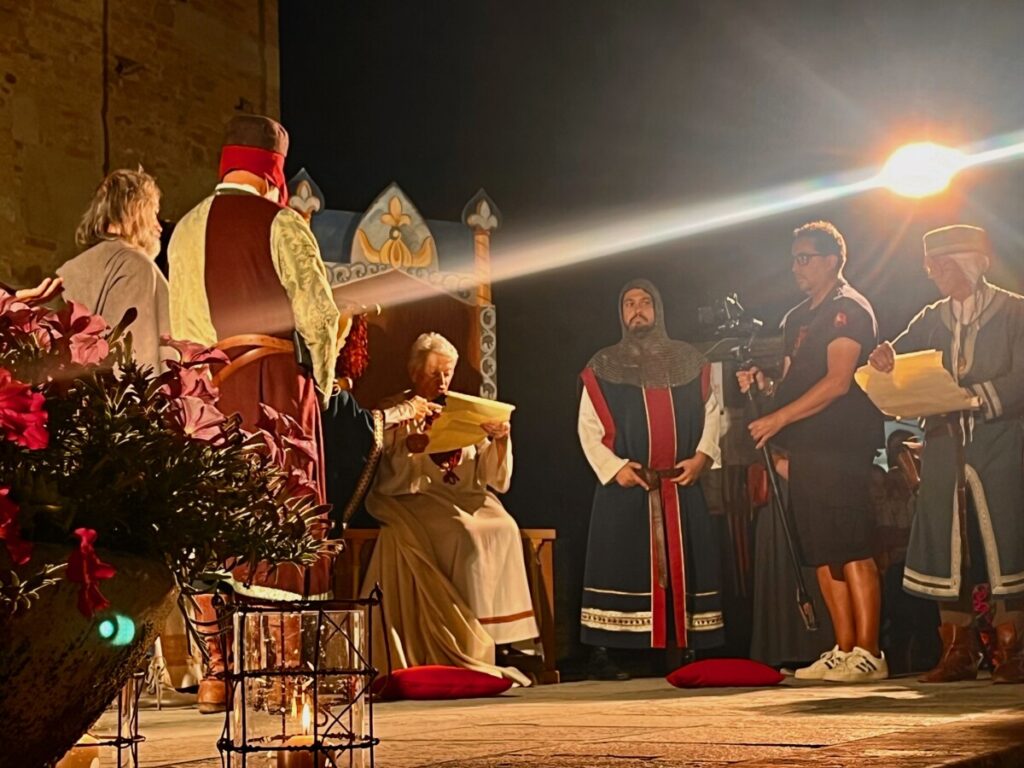 Come da tradizione, la fiaccolata si è snodata dal sentiero che porta al Castello di Bianello sino al sagrato della chiesa di Sant’Antonino, luogo sacro che ha ospitato l’investitura di nuovi Cavalieri, un rito solenne che rinnova un legame forte con la storia e con valori secolari. Il suggestivo corteo, arricchito dalla presenza di sbandieratori e dalla magica atmosfera dei fuochi d’artificio, ha rappresentato non solo un omaggio alla memoria della Contessa Matilde, ma anche un momento di convivialità e condivisione culturale.